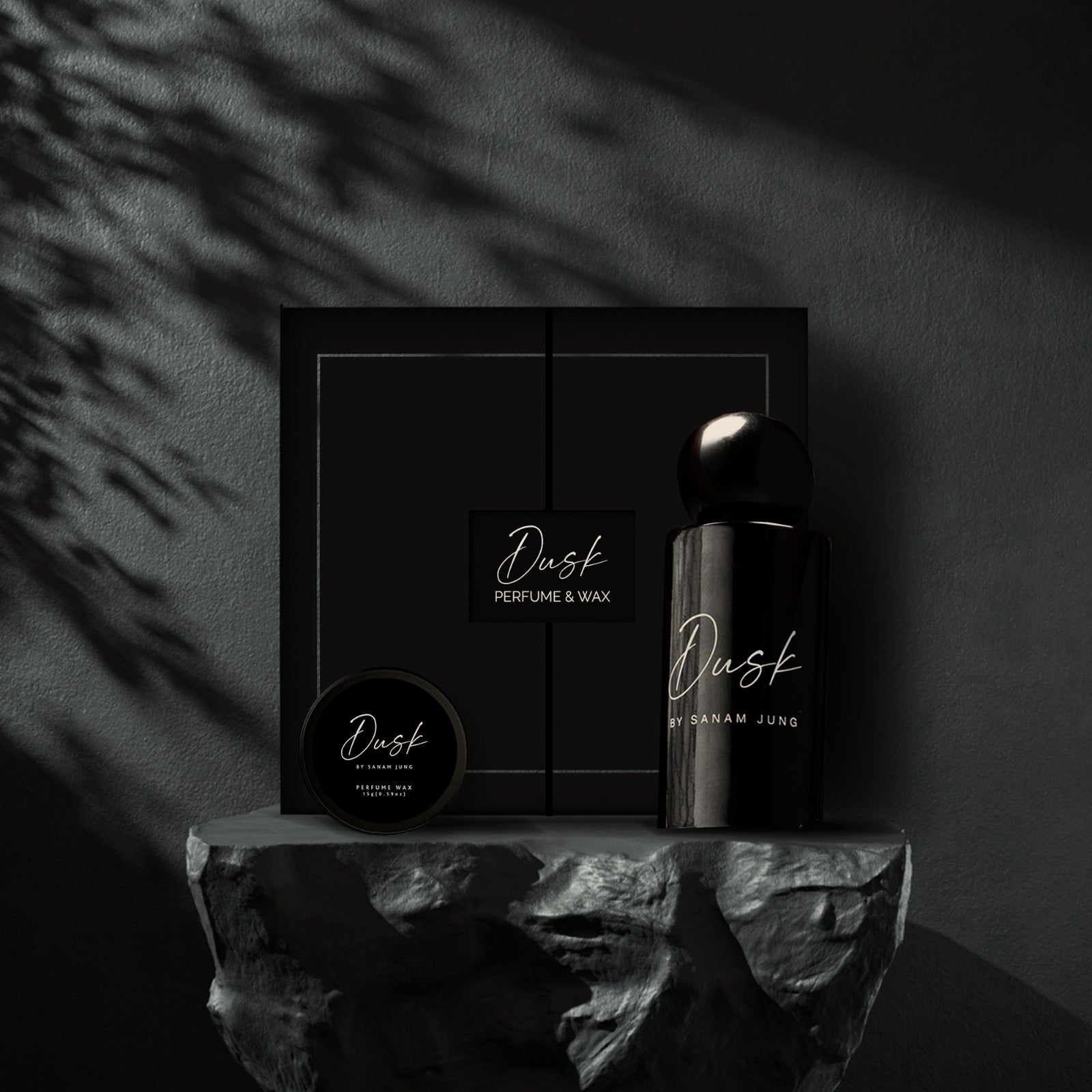 A fragrance that breaks the mold Dusk by Sanam Jung is a unisex Eau De Parfum that redefines elegance with strength, uniqueness, and lasting allure. This special edition Gift Box brings together the bold spirit of Dusk Perfume and the convenience of its matching Perfume Wax, a duo crafted for confidence and sophistication.