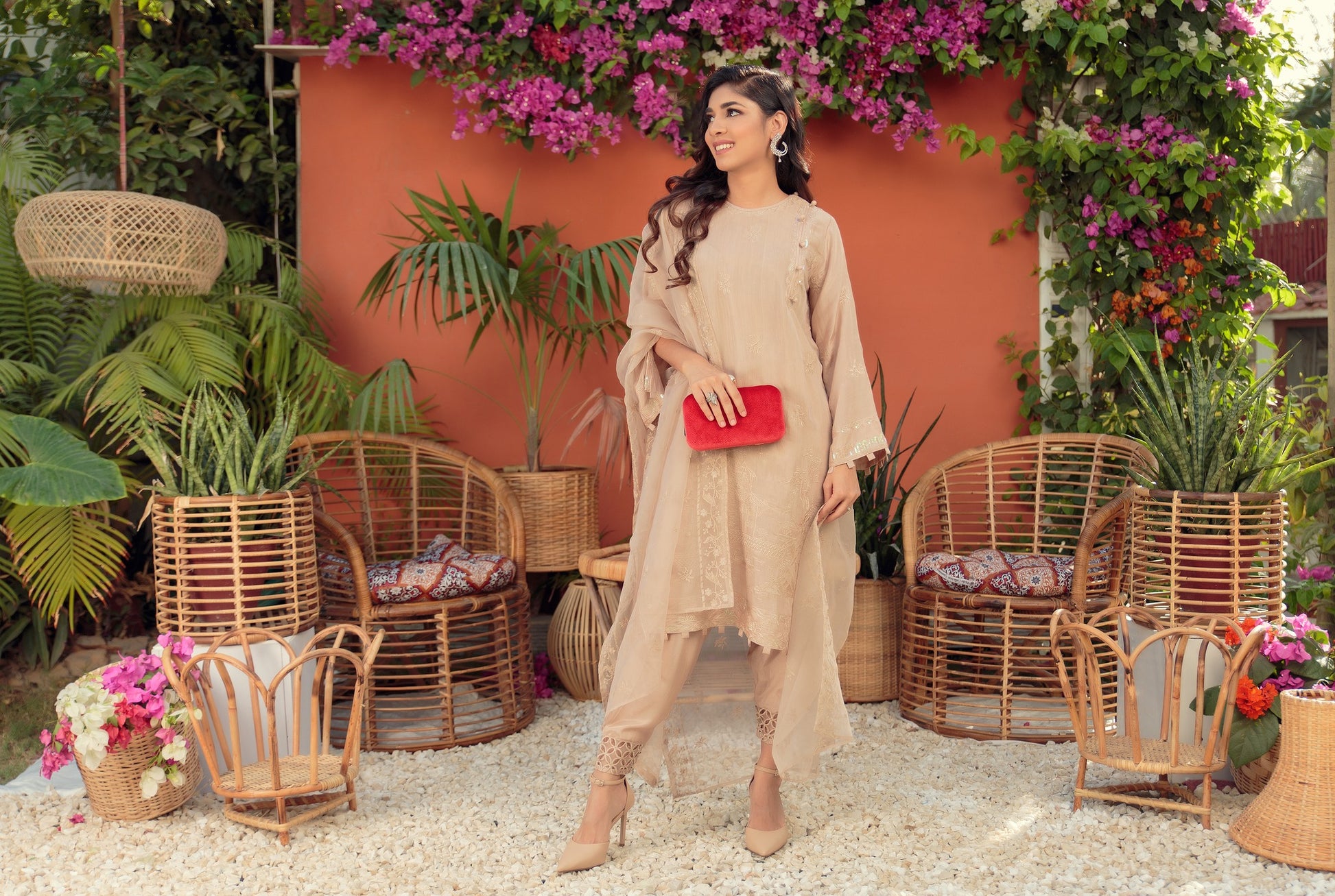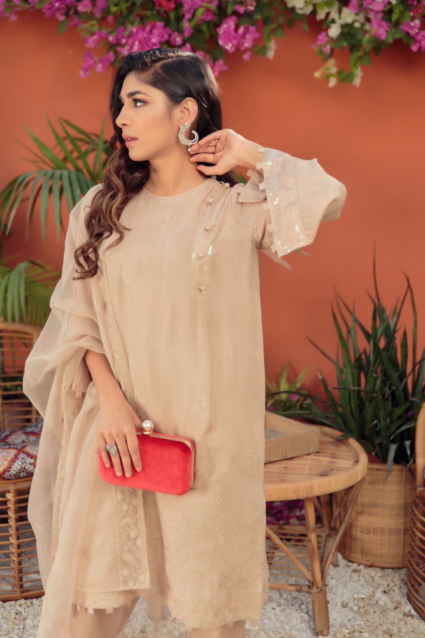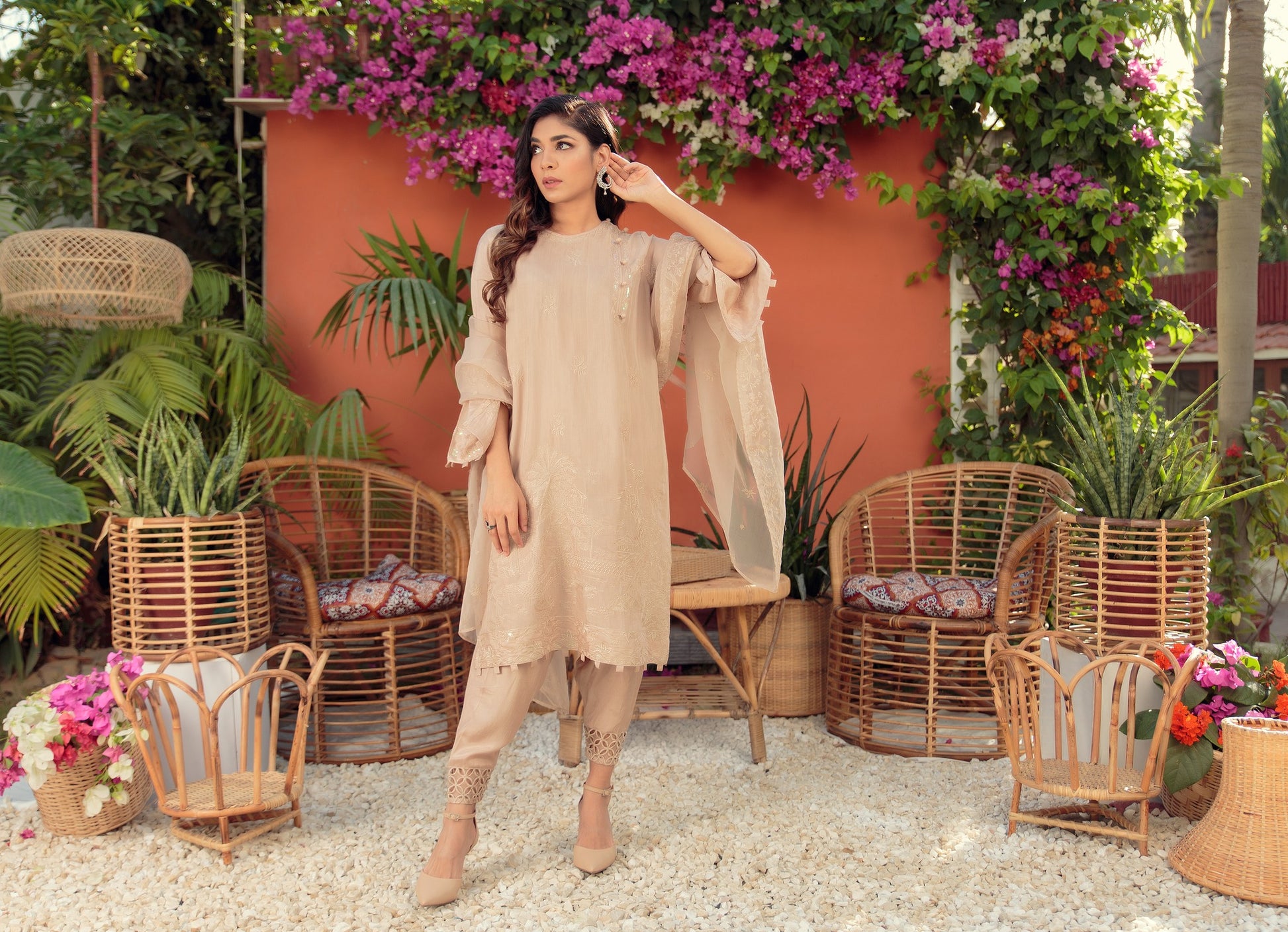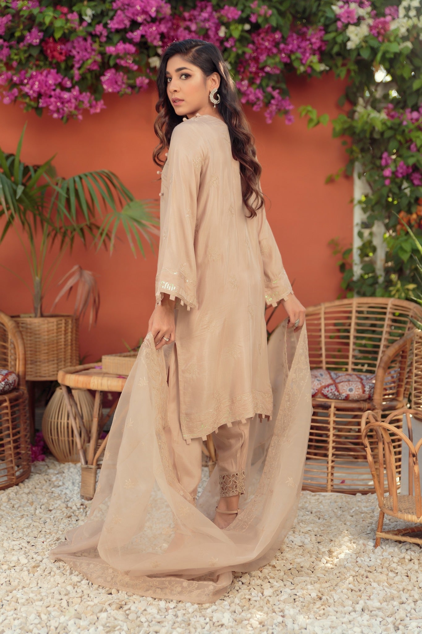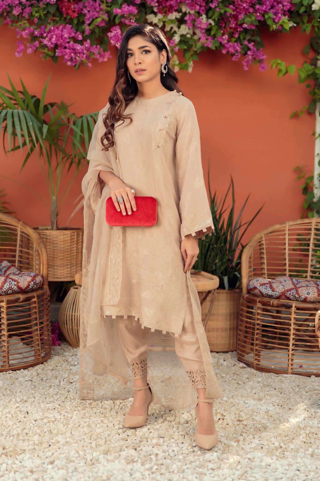 Step out in style this season. A perfect blend of thread embroidery on this cotton silk kurta paired with a straight cut shalwar with delicate cutwork and a beautiful organza dupatta.